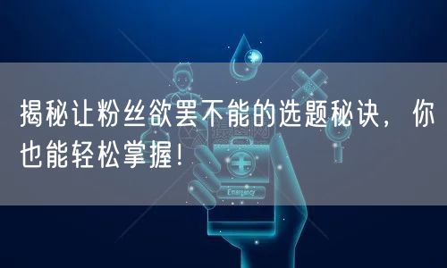 在当今信息爆炸的时代,如何创作出让人欲罢不能的内容,成为许多内容创作者关注的焦点。本文将为你揭秘让粉丝欲罢不能的选题秘诀,让你轻松掌握内容创作的精髓。