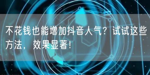 摘要:本文将为您揭示不花钱也能增加抖音人气的方法,通过实践这些方法,您可以显著提升抖音粉丝量和关注度。