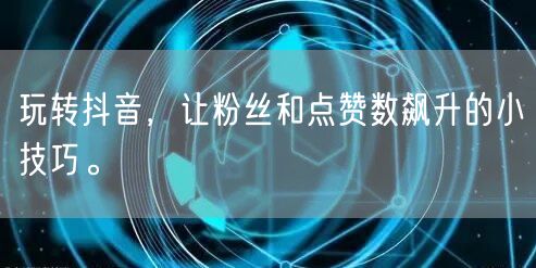 通过掌握这些秘密小技巧,你可以在抖音平台上快速增加粉丝和点赞数。不断尝试、学习与创新,让你的抖音账号成为众人瞩目的焦点。