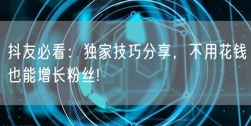 通过以上独家技巧,相信你在抖音上不用花钱也能增长粉丝。记住,坚持优质内容和与粉丝的互动是关键。祝你成为抖音红人!