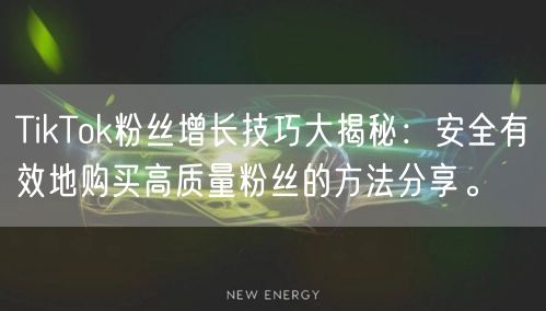 TikTok作为全球热门的社交媒体平台,吸引了众多用户和内容创作者。在这个竞争激烈的平台上,如何快速增长粉丝,提升个人品牌的影响力成为了一个重要的问题。本文将为你揭示TikTok粉丝增长技巧,特别是如何安全有效地购买高质量粉丝的方法。